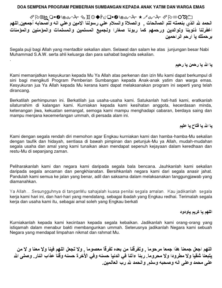 Doa Sempena Majlis Pemberian Sumbangan Anak Yatim